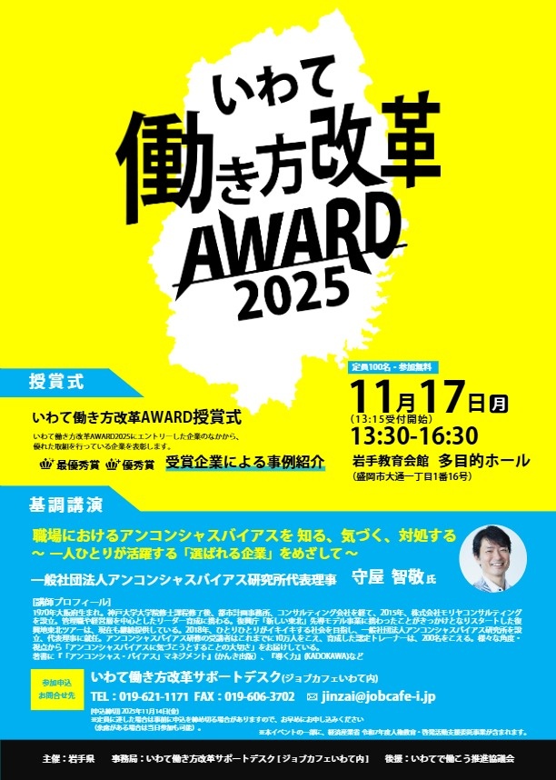今年度も、「いわて働き方改革AWARD2025」を開催し、